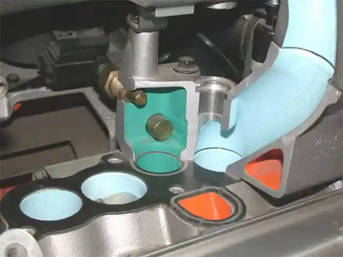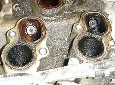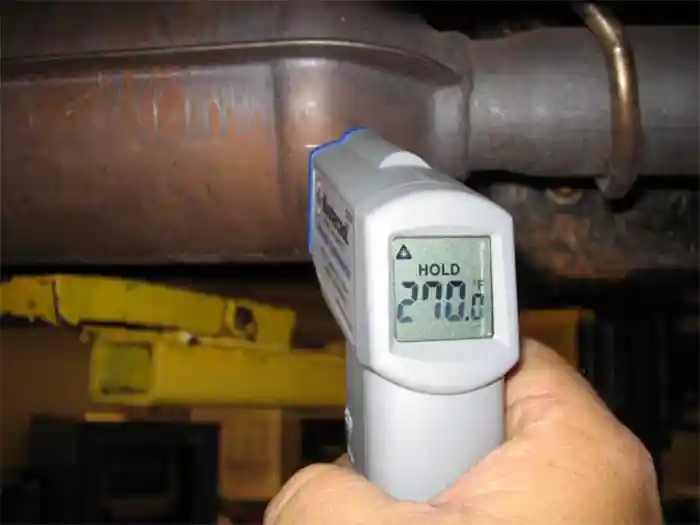 Category: I/M Failure DiagnosisDuring a loaded-mode I/M emissions test, a vehicle fails due to high NOx emissions (2500 ppm, above the limit). The exhaust gas analyzer shows normal HC (100 ppm), normal CO (0.3%), normal CO2 (14.0%), and normal O2 (0.7%). The vehicle has no diagnostic trouble codes (DTCs), and the cooling system is functioning properly. What is the cause of the NOx emission failure?