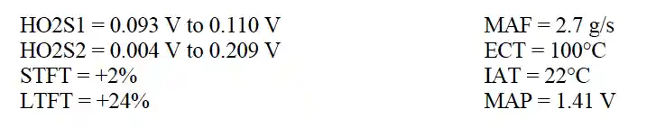 Category: I/M Failure DiagnosisA vehicle is undergoing an emissions test, and the exhaust gas analyzer provides the following readings: