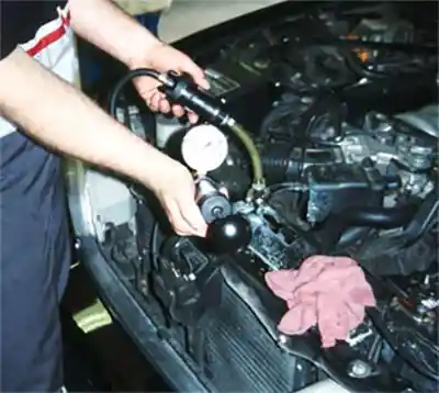 Category: I/M Failure DiagnosisDuring an emissions test, the technician performs a functional fuel cap pressure test using a certified tester. The fuel cap fails to hold the specified pressure, and the tester indicates a leak. The vehicle’s OBD system shows no evaporative emissions (EVAP) system diagnostic trouble codes (DTCs). The fuel cap appears undamaged, with no visible cracks or wear on the seal. What is the appropriate next step to diagnose the fuel cap test failure?