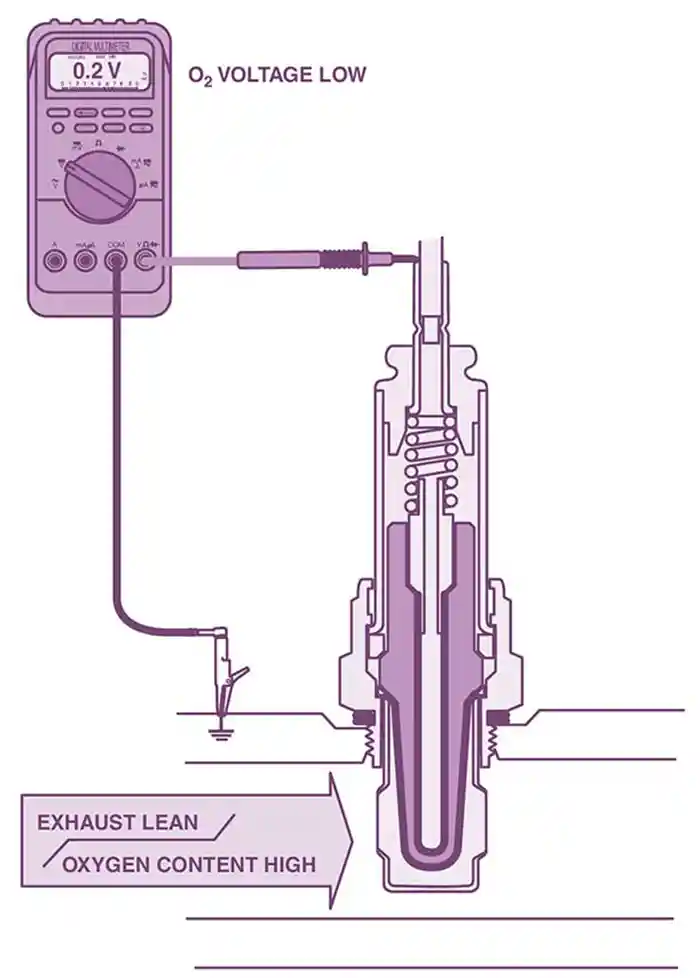 IncorrectThe correct answer is A. A lean air-fuel mixture (too much air relative to fuel) results in more complete combustion, which aligns with the observed exhaust gas readings. Normal HC (120 ppm) and low CO (0.3%) indicate minimal unburned fuel and carbon monoxide due to sufficient oxygen for combustion. High CO2 (14.8%) reflects efficient combustion, as most carbon is converted to CO2. Low O2 (0.2%) shows that most oxygen is consumed during combustion. High NOx (1800 ppm) is a hallmark of a lean mixture, as the excess air and higher combustion temperatures promote nitrogen-oxygen reactions. These readings collectively point to a lean condition, making option A the cause.