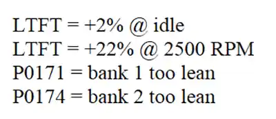 Based on these readings, what is the cause of the emissions failure?